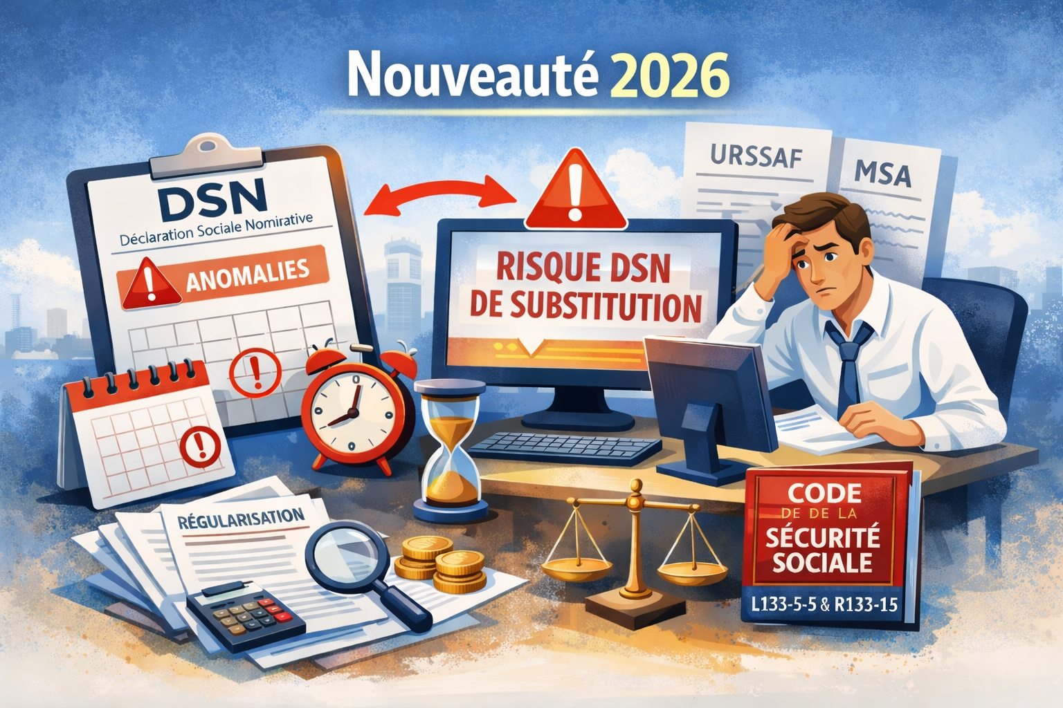 La DSN de substitution, applicable depuis le 1er janvier 2026, est mise en place par les organismes sociaux lorsque la DSN transmise est incomplète, tardive ou non exploitable.